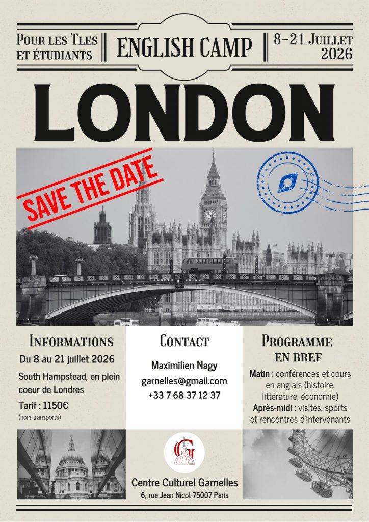 - Complétez le formulaire d’inscription et procédez au paiement en ligne : Formulaire Inscription Séjour “English Camp in London 2026”