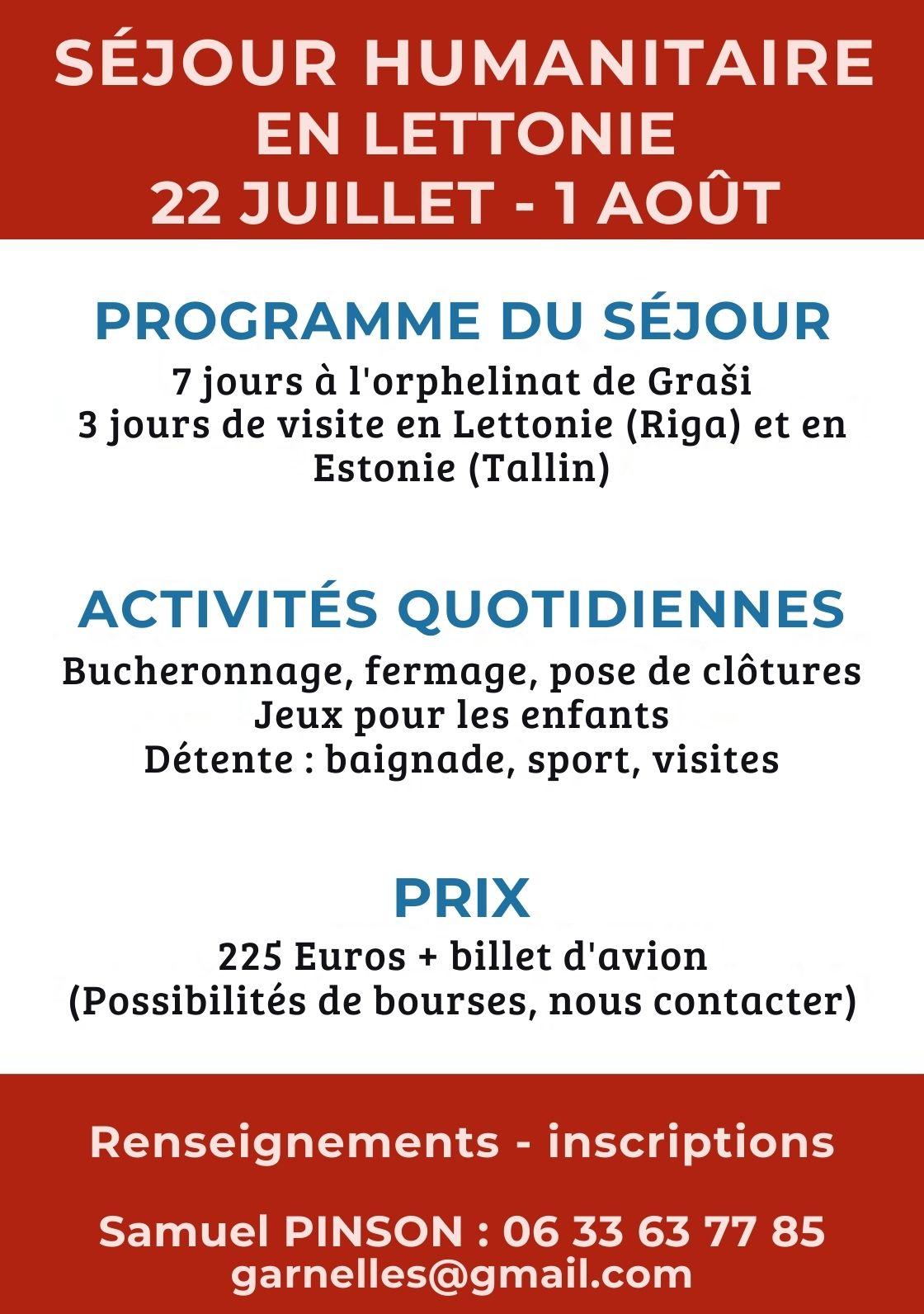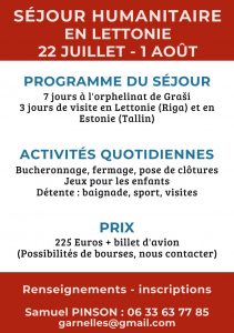 Séjour humanitaire en Lettonie du 22 juillet au 1 août 2026